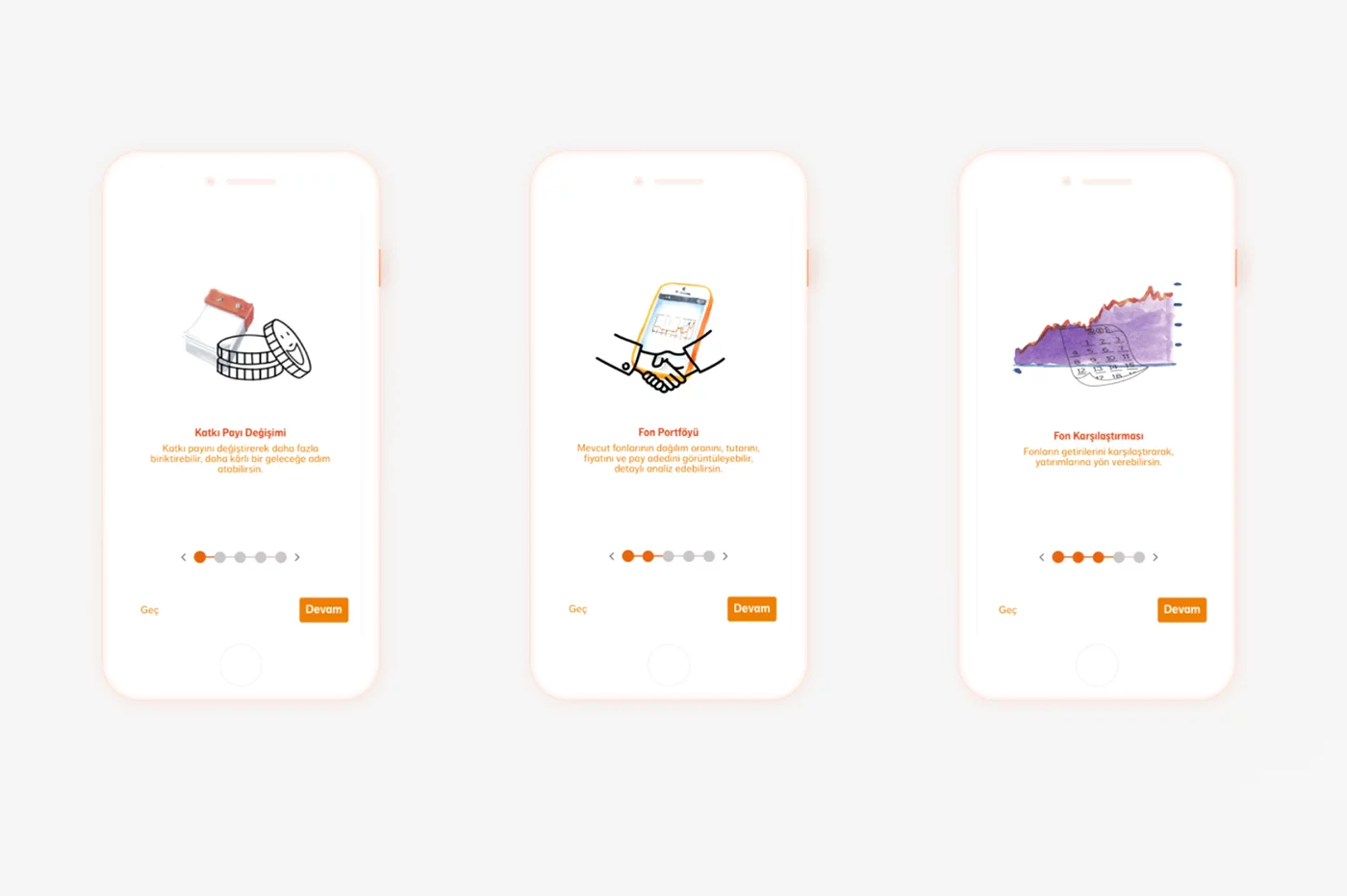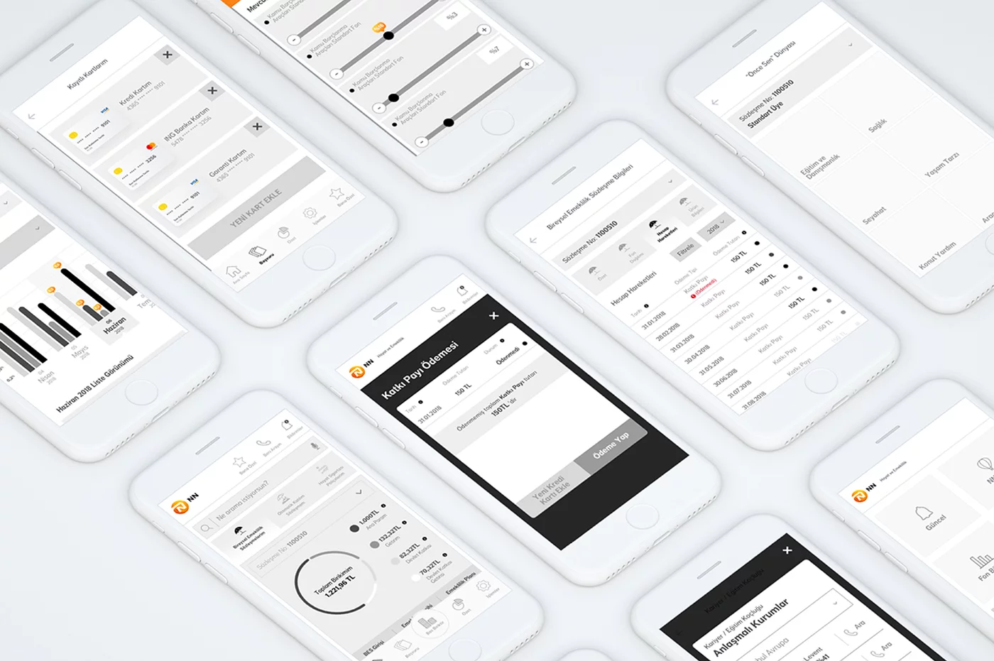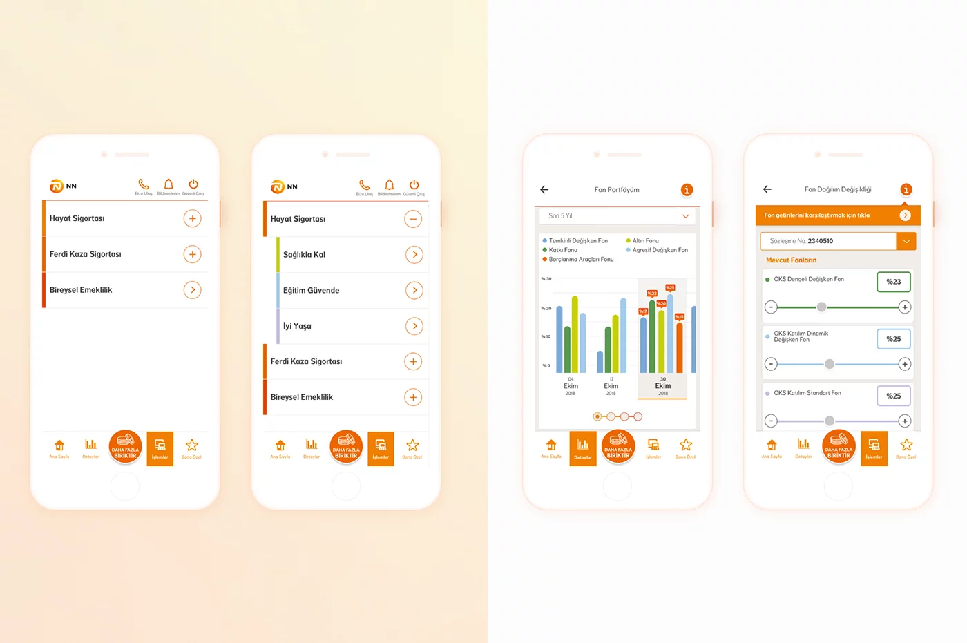 NN Hayat Emeklilik, mevcut ve görünür ürün özellikleri yelpazesinde mobil uygulama görsel sistemini ve UX stratejini oluşturduk.